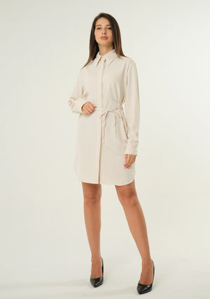 Abito chemisier tinta unita con incrocio, colletto a punta, maniche lunghe, chiusura frontale con bottoni e patta nascosta, fondo stondato