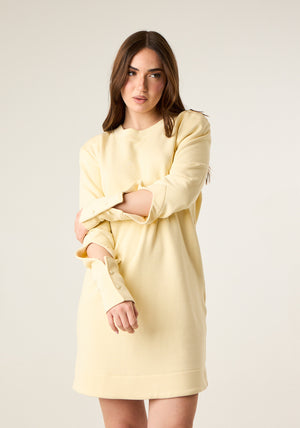 Abito corto in felpa con spalline imbottite e polsini con apertura laterale e bottoni