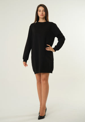 Abito maxi felpa con profili in maglia elastica, scollo rotondo, maniche lunghe, interno felpato