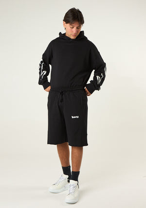 Bermuda in cotone leggero con cuciture a taglio vivo, tasche laterali e logo a contrasto di colore, vita elastica con coulisse