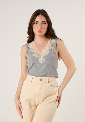Canotta con scollo in pizzo