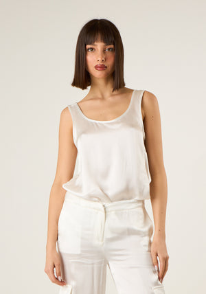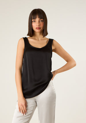 Canotta morbida in raso a scollo rotondo, bretelle larghe, taglio dritto