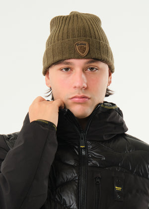 Cappello Kenwood con lavorazione a costina in misto lana e scudo logato