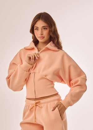 Felpa corta con corpetto in maglia elastica, maniche lunghe ampie, chiusura frontale con zip
