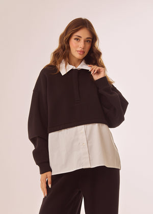 Felpa doppiata con dettagli in camicia a contrasto