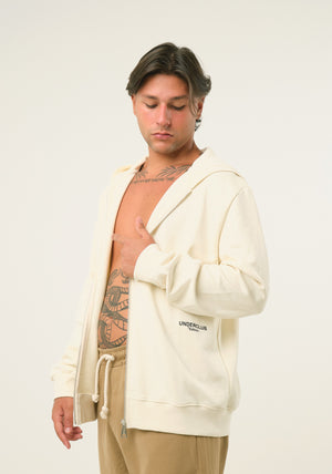 Felpa fullzip con stampa posteriore, cappuccio fisso, maniche lunghe, dettagli in maglia elastica, interno garzato