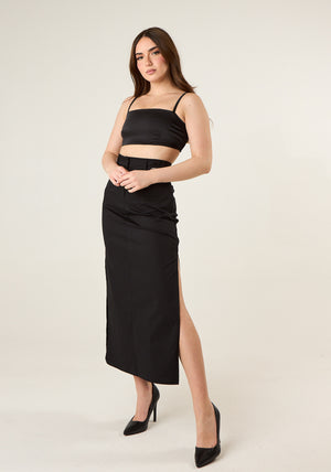 Gonna a matita con spacchi laterali e tasche, vita regolare con chiusura con bottone e zip frontale