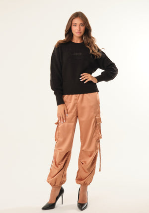 Pantalone cargo in raso con caviglia e vita elasticizzata, tasche laterali, gamba morbida