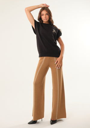 Pantalone con bande laterali a vita alta con fascia elastica, gambe a palazzo