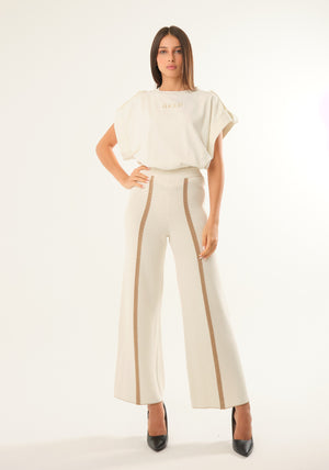 Pantalone con bande laterali a vita alta con fascia elastica, gambe a palazzo