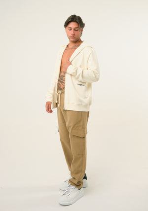 Pantalone con logo laterale in punto cotone, gamba morbida, pences frontali, vita regolare con passanti, tasche laterali, chiusura frontale con bottone e zip