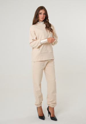 Pantalone in felpa con dettagli metal, caviglia elasticizzata, tasche laterali e vita elastica, interno garzato