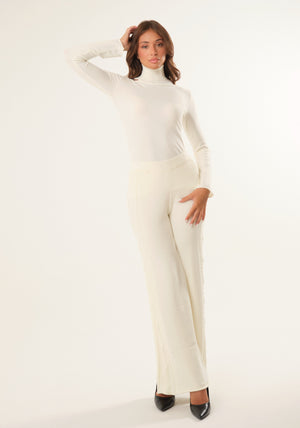 Pantalone palazzo con dettaglio laterale, vita alta con fascia elastica