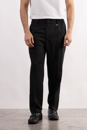Pantalone regular in viscosa a gamba dritta con fascia elastica in vita, chiusura con bottone e zip