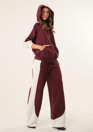 Pantalone tuta bicolor con fasce laterali a contrasto di colore, gambe ampie, vita regolare con fascia elastica, tasche laterali a filetto, interno garzato
