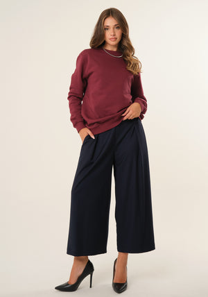 Pantaloni alla gaucho con pences frontali, tasche laterali, vita elasticizzata
