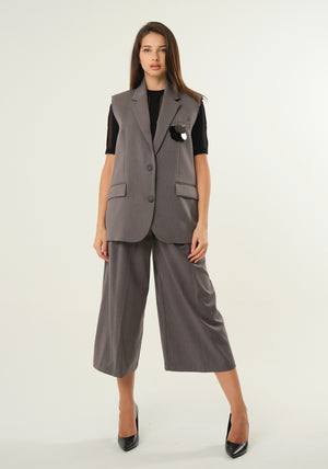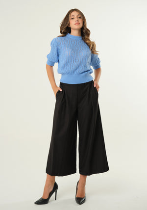 Pantaloni alla gaucho con pences frontali, tasche laterali, vita elasticizzata