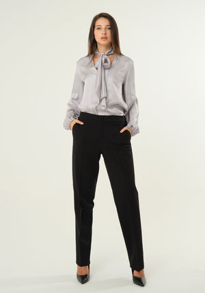 Pantaloni a sigaretta in punto milano, tasche laterali, fascia elastica in vita