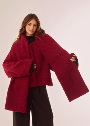 Pelliccia con ampia sciarpa e chiusura frontale con ganci