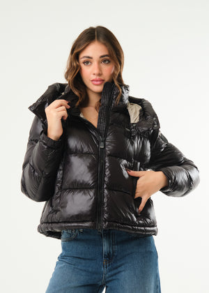 Piumino micro rip Gloria idrorepellente con collo alto e cappuccio removibili. Trapuntatura a righe orizzontali con interno a contrasto di colore, chiusura frontale con zip, tasche laterali, coulisse su fondo, patch e passante con logo