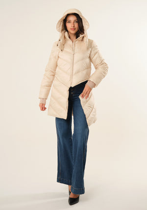 Piumino midi trasformabile con cappuccio removibile, maniche lunghe, tasche laterali, chiusura frontale con doppia zip