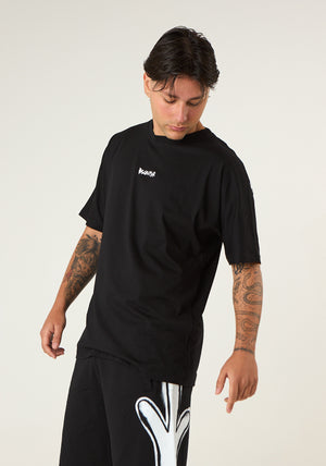 T-shirt basic con maxi stampa posteriore, scollo rotondo, taglio dritto, mezze maniche
