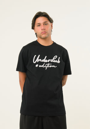 T-shirt con logo ricamato frontale, scollo rotondo, mezze maniche, taglio dritto