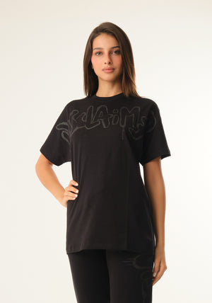 T-shirt con stampa lurex a taglio dritto, mezze maniche, scollo rotondo