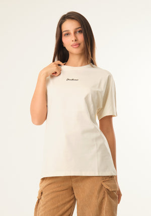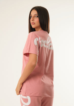 T-shirt con stampa posteriore spray a taglio dritto, mezze maniche, scollo rotondo