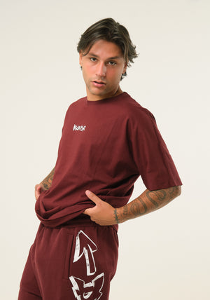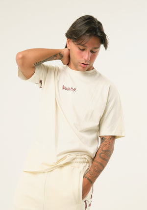 T-shirt con stampa spray posteriore, taglio dritto, mezze maniche, scollo rotondo