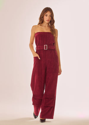Tuta a gamba lunga in velluto a costine con cintura coordinata removibile