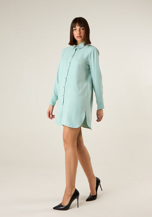 Abito corto chemisier a maniche lunghe con spalline interne, colletto classico, chiusura frontale con bottoni in tinta