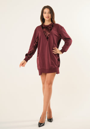 Abito felpa con inserti in ciniglia e trasparenze, scollo rotondo, maniche lunghe, fondo in maglia elastica, interno garzato