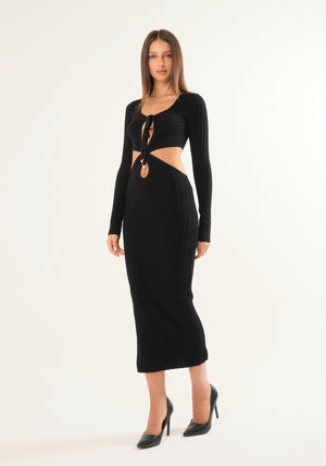 Abito lungo con incrocio frontale, scollatura da annodare, maniche lunghe,