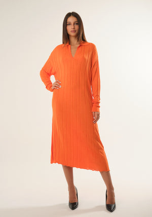 Abito maxi polo con motivo a righe, maniche lunghe, fondo arricciato