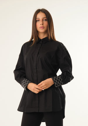 Camicia over con dettagli preziosi su polsino e colletto, maniche lunghe