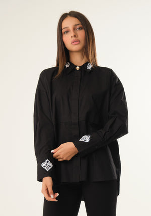 Camicia over con rivetto al centro, maniche lunghe, colletto e polsino con dettaglio a contrasto di colore