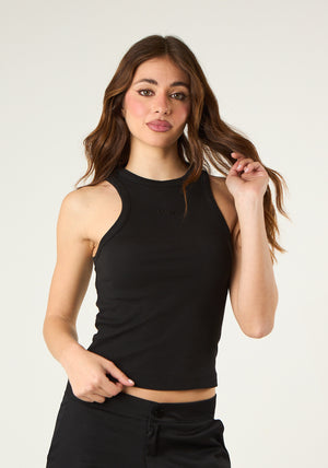 Canotta a costine scollo vogatore con logo frontale ricamato tono su tono
