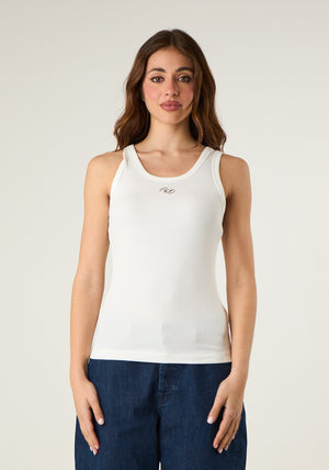 Canotta T-Anki a coste con over D stampato, stringhe avvolgenti, scollo rotondo, bretelle larghe