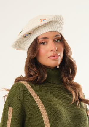 Cappello a basco in misto lana con ricami colorati