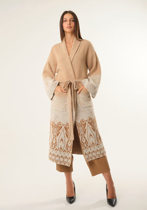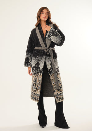 Cardigan lungo in misto lana con scollo a scialle, cintura coordinata removibile
