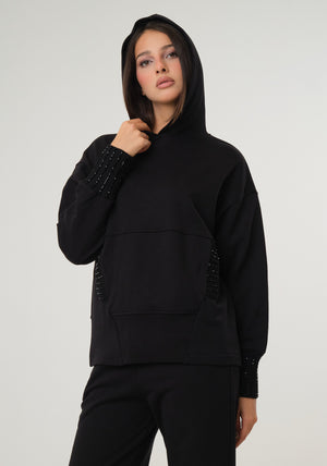 Felpa con dettagli applicati, tasca a marsupio, cappuccio fisso, maniche lunghe, interno garzato