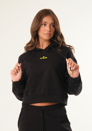 Felpa crop basic con stampa logata frontale, cappuccio fisso con coulisse, maniche lunghe, interno garzato