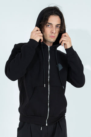 Felpa fullzip con patch logato 3D, cappuccio fisso con coulisse regolabile a contrasto di colore, tasche laterali, maniche lunghe, taglio dritto. Vestibilità regolare