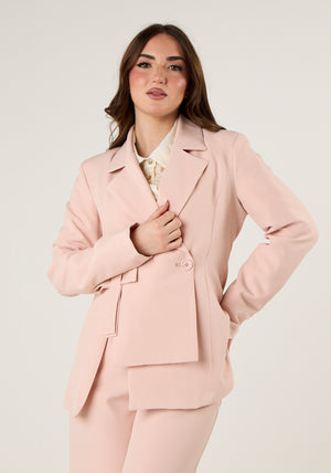 Giacca doppiopetto con fiocco laterale, maniche lunghe, fodera e spalline interne