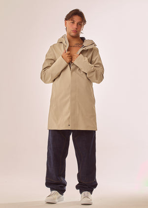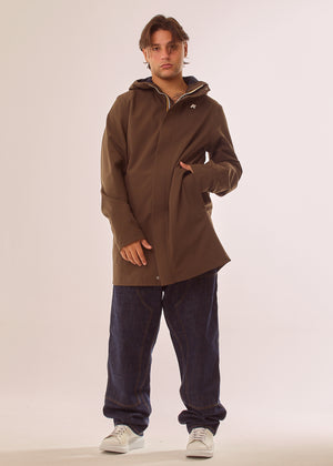 Giubbino Marlyn bonded a taglio lungo con cappuccio fisso, maniche lunghe, chiusura frontale con zip logata, micropile interno