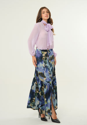 Gonna ampia in fantasia con bottoni frontali, vita regolare