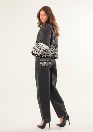 Jeans carrot fit a vita bassa con passanti, tasca in jacquard sul retro, chiusura frontale con bottone logato e zip