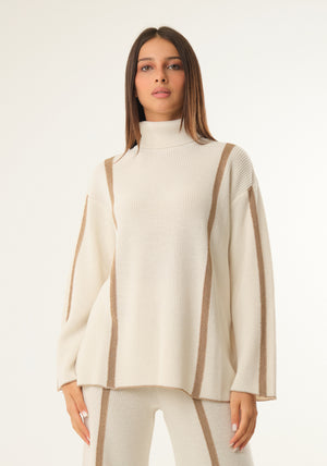 Maglia con bande a contrasto, collo alto, taglio dritto, maniche lunghe con fondo a campana