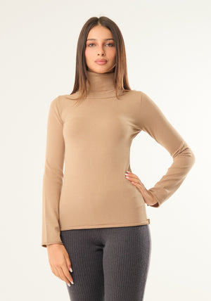 Maglia con scollo omerale a collo alto e maniche lunghe, taglio aderente